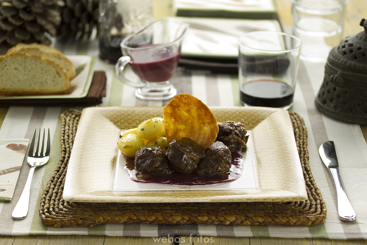 No dudo de que estas carrilleras tienen que estar exquisitas, conociendo la jugosidad y la melosidad de este tipo de carne, y con un acompañamiento tan bien avenido como la salsa de arándanos. Esta salsa yo la he hecho simplemente con Pedro Ximénez y dejándola reducir, y está exquisita. La sugerencia de las tejas de jenjibre me parece de los más novedoso, y es de ésos acompañamientos con los que realmente sorprendes.