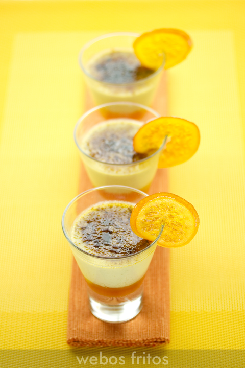 Esta receta tan pitiminí, no propia de esta cocina manchega, es de todas las que hago con foie la más exitosa para los mios.La crème brûlée es una crema típica francesa, que se toma, la mayoría de las veces, como dulce, un similar a nuestra crema catalana, con una base de crema a la que se le pone una capa de azúcar que se quema. También sirve de base para un montón de recetas saladas, y como muestra, la de hoy.Tiene un sabor delicado y suave, nada empalagoso, con un contraste de sabores estupendo y con un sobresaliente juego de texturas que le dan el azúcar caramelizada crujiente por encima y la gelatina que lleva en la base, hecha a partir del jarabe que sobra de hacer las naranjas confitadas.Para esta receta no es necesario denervar el foie, porque la crema se cuela, y en el colador quedarán los restos, pero yo prefiero hacerlo porque no se tarda nada y así trabajo sobre piezas limpias. Para esta receta también podéis utilizar trozos de foie, que se encuentran más fácilmente en los supermercados que un foie entero con sus dos lóbulos.La presentación, al gusto. Podéis optar por el vaso, como yo he hecho, y que se vean las capas, o por el cuenco de barro y que sea la cuchara, al introducirla, la que delate el jarabe o la gelatina de naranja de la base.