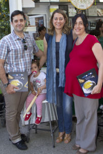 • María se acercó con su marido y su niña. Me hizo ilusión, porque no conocía a su hija, y además, acababan de operar a su madre, y antes de irse a verla pasó a darnos un beso y a que le firmáramos su libro, son mis farmacéuticos de cabecera.