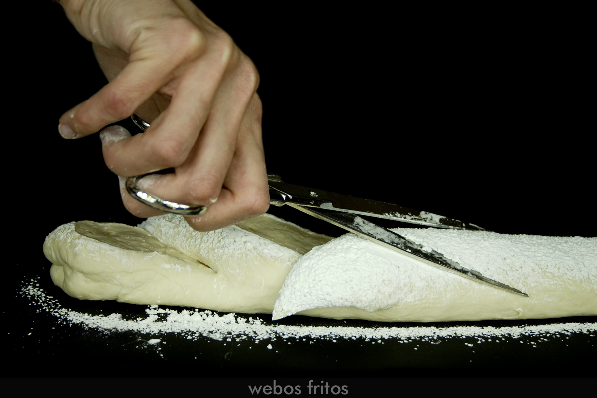 Dar forma de barra según las fotografías del post mencionado, hasta el punto 8, ponerla sobre una lámina de papel para hornear (importante). y dejar levar unos 30-35 minutos.