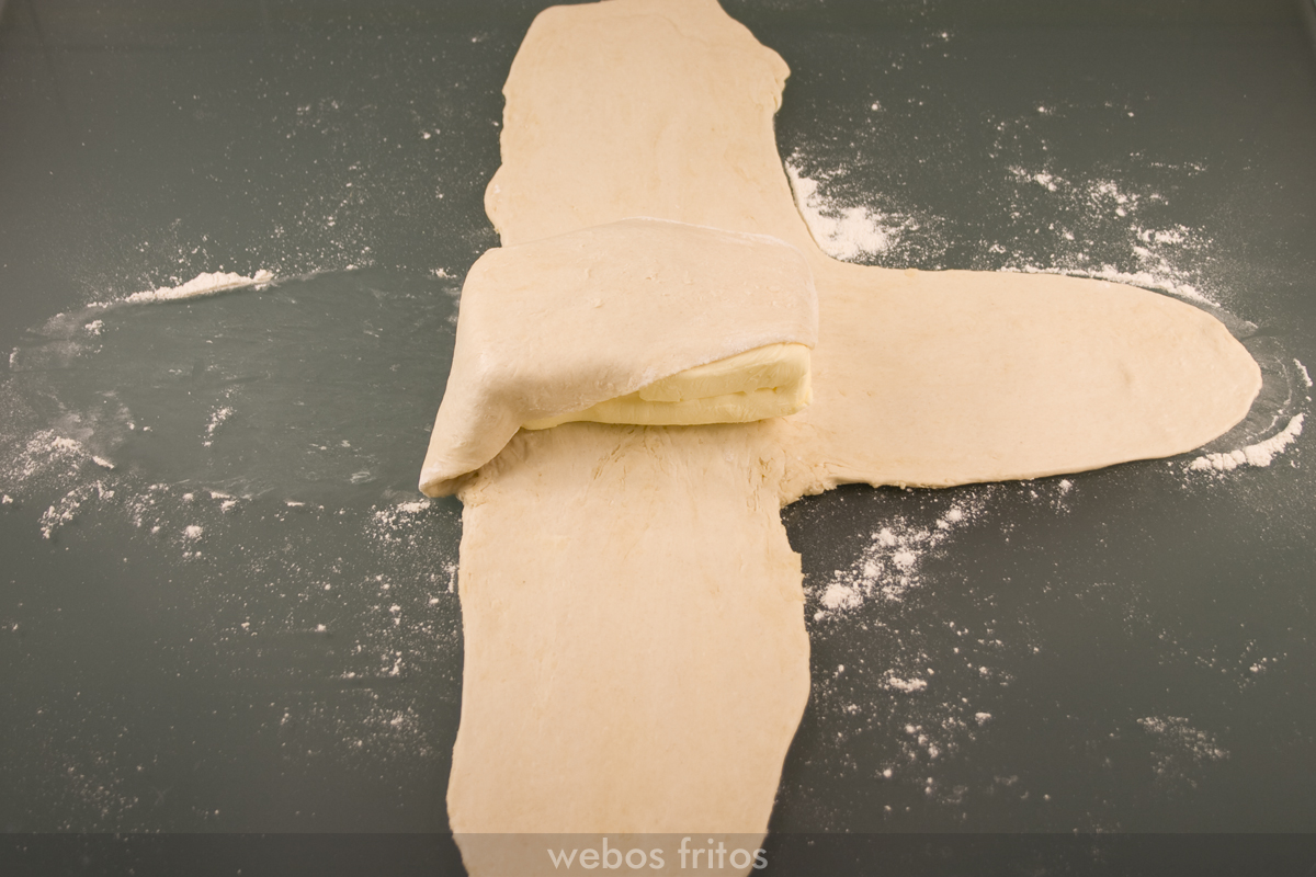 A continuación, envolver la mantequilla con los brazos de la cruz, como si de un paquete se tratase.
