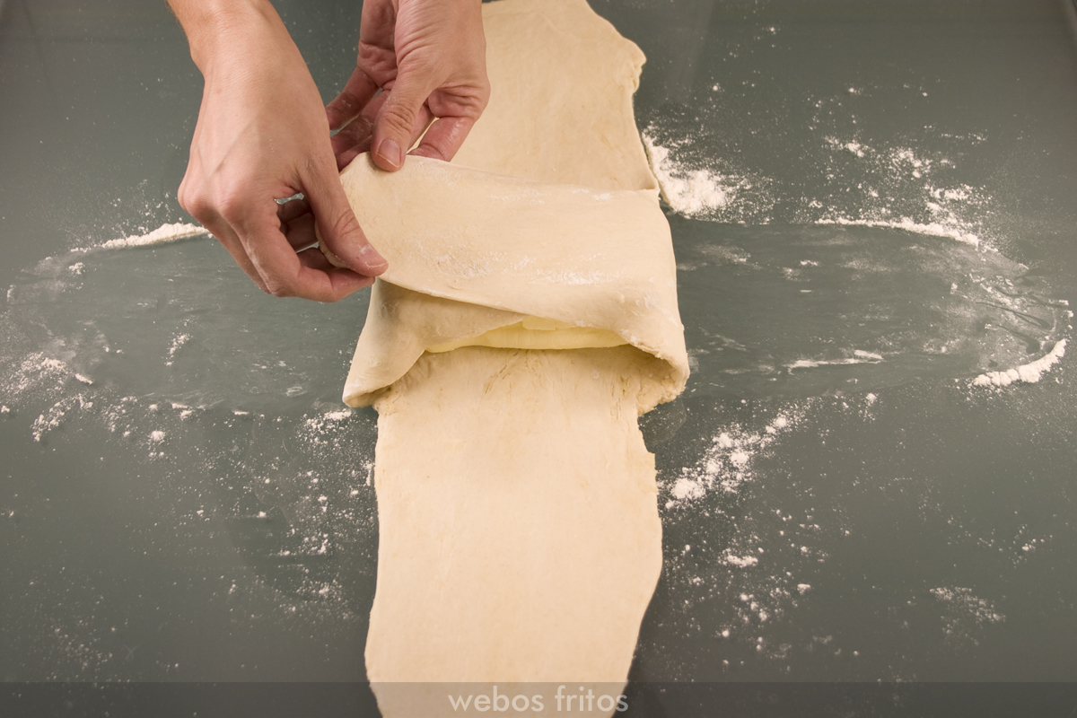 - La mantequilla que se pone dentro de la masa estará en el frigorífico. Si está muy dura, le daremos un poco de calor —solo un poco— de nuestras manos antes de empezar a trabajarla.