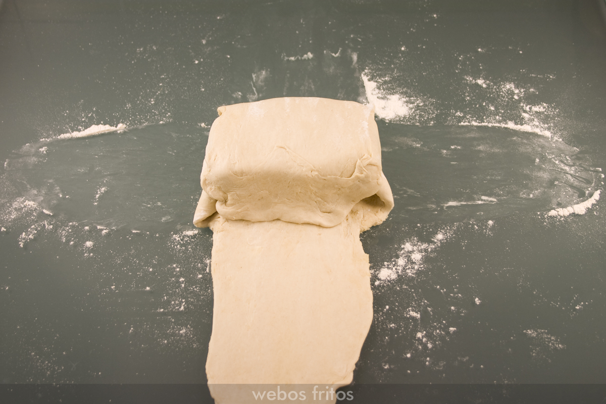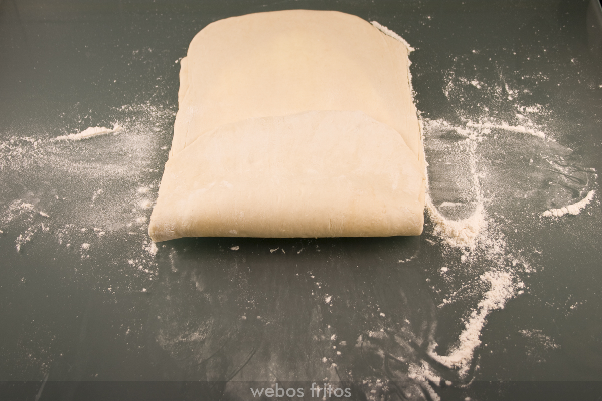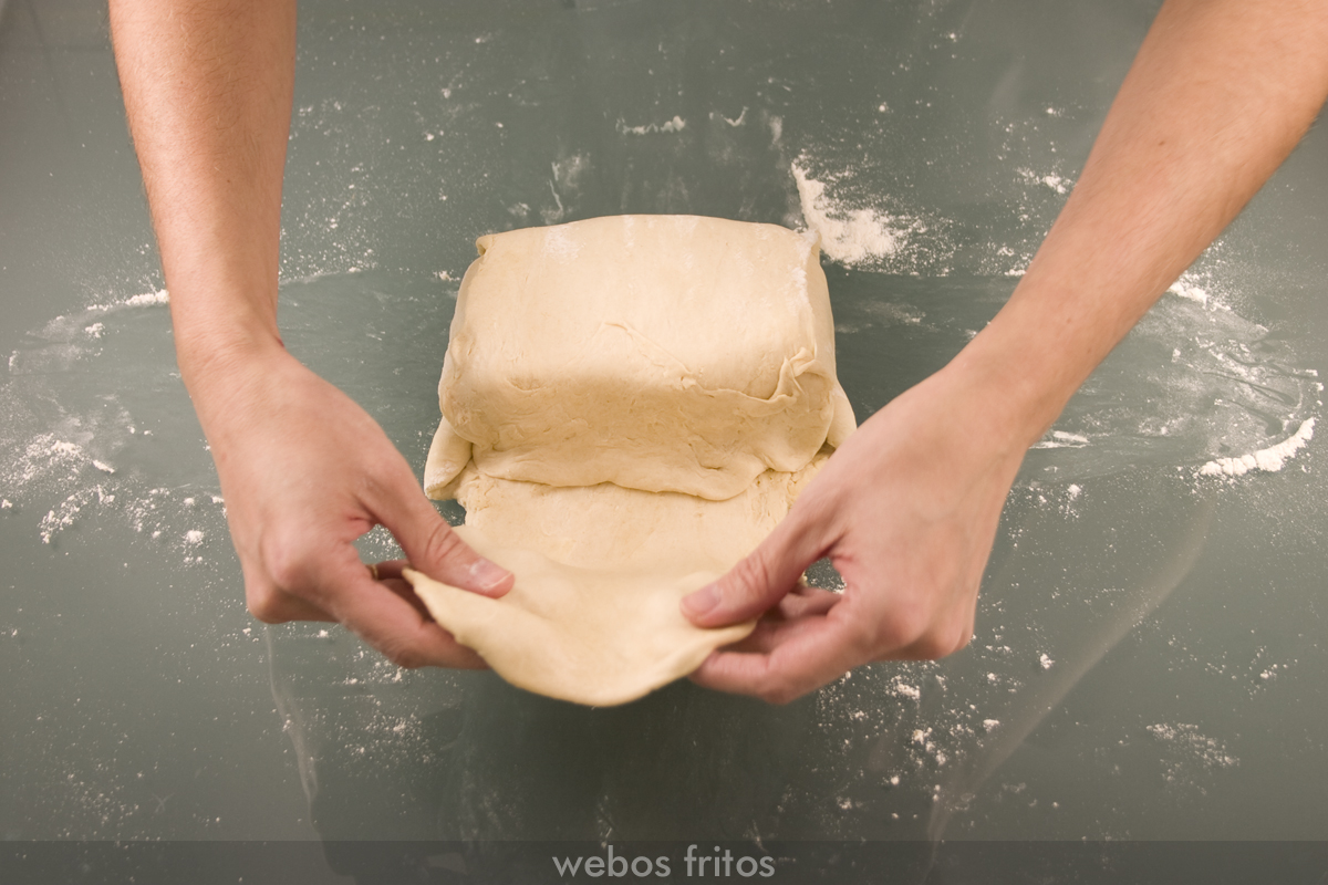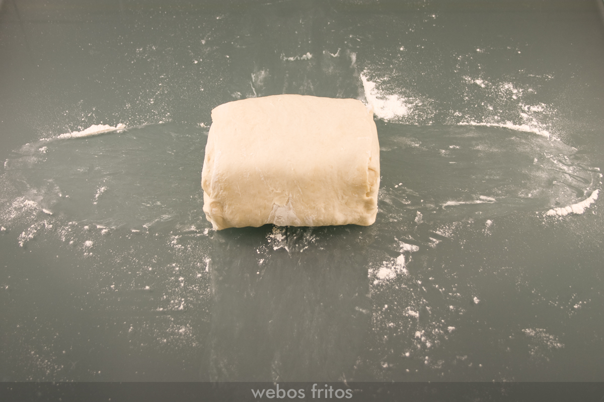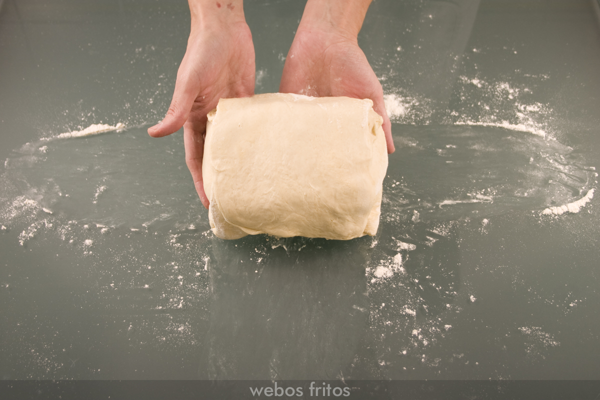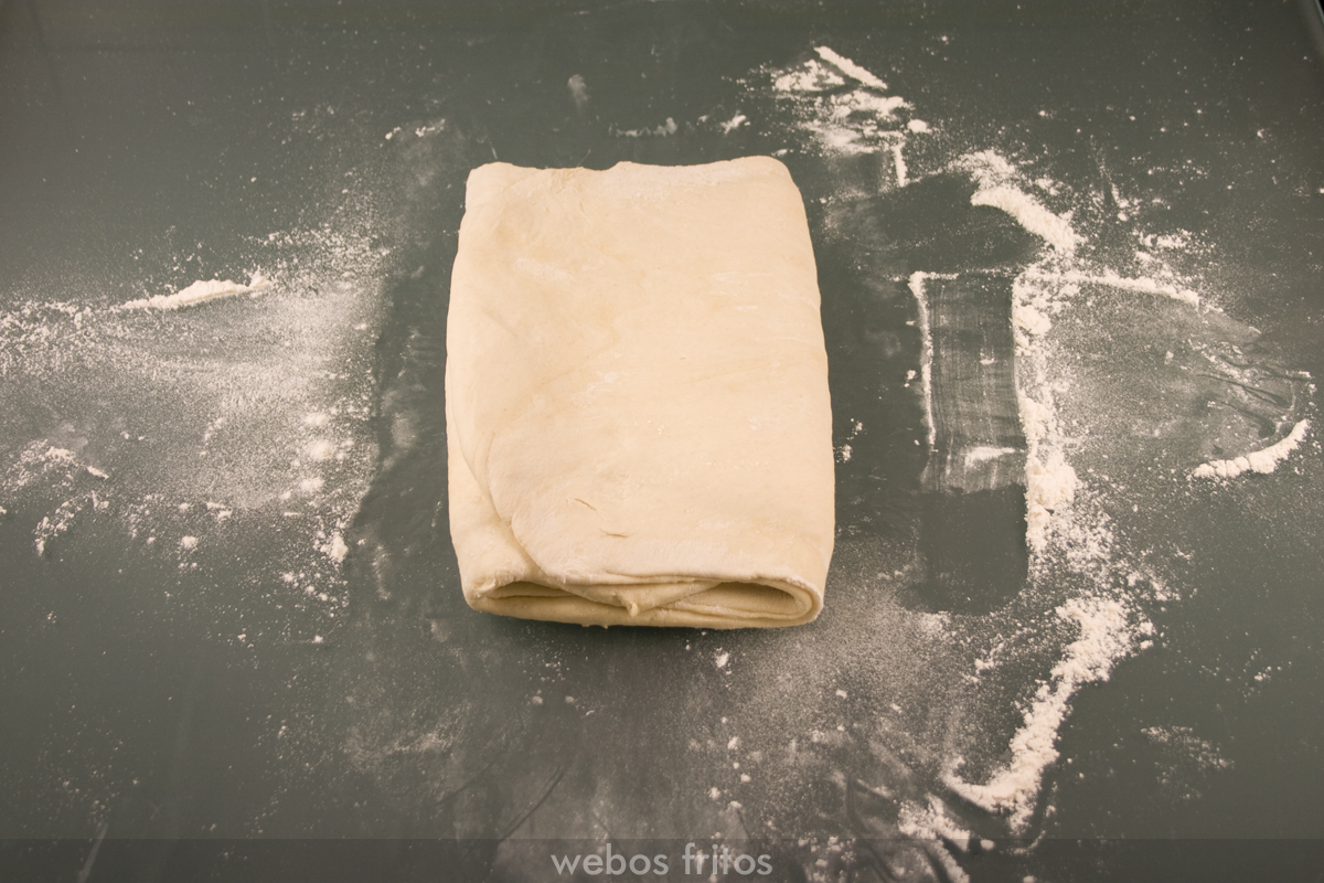 Esta receta de hojaldre puede salir de tus manos. ¿Por qué no?Esta es la típica cosa que tenemos mitificada como trabajosísima, y preferimos degustarlo en una buena pastelería o comprar las tan socorridas planchas de hojaldre, que dan bastante buen resultado.Os aseguro que no es comparable a nada de lo que hayáis probado de origen industrial. Me pasa algo parecido con el pan y con la masa quebrada, pero en el tema hojaldre casero frente al comprado se multiplica por mil. Lo podrán decir los que lo han hecho: no exagero lo más mínimo. Es un sabor delicioso, tanto como el olor que desprende en el horno, y ese primer bocado… Para los que nos deleitamos con un buen plato es indescriptible.Siempre os propongo recetas muy fáciles, ricas y nada trabajosas, de esas que hacemos sin despeinarnos. Pues en esta ocasión vamos a despeinarnos un poquito.No es cierto que sea complicadísimo, solo apto para manos súper expertas. Los ingredientes son básicos. Solamente es un poco laborioso, es decir, tenemos que controlar un poco las vueltas que damos y vigilar que este fresco el ambiente.Que haya que utilizar mantequilla especial de hojaldre, de la que sólo disponen de ella en España algunos obradores. A mí me sale muy bueno con mantequilla de supermercado de buena calidad. La mantequilla de hojaldre se trabaja mejor, porque es especial para ello, pero con una de buena calidad y trabajando con ambiente fresco, sale estupendo.Que después de hacerlo acabes hasta el gorro, sobre todo por lo latoso de los tiempos de espera para lo pronto que se come, y que no repitas nunca más la experiencia. A mí me duró el hartazón unas 24 horas, y sólo la primera vez que lo hice.Que sólo se pueda hacer en encimera de mármol: mi encimera es corrientísima y lo he logrado.Es cierto que el ambiente de la cocina tiene que estar muy fresco. Si es invierno, debéis quitar la calefacción de la cocina, y tenerla aireada un par de horas antes.Hay que estar haciendo solo esta receta: no conviene tener nada al fuego que de calor, ni la cabeza pendiente de otras recetas, o sea, en modo monotarea (complicado, ¿eh?).