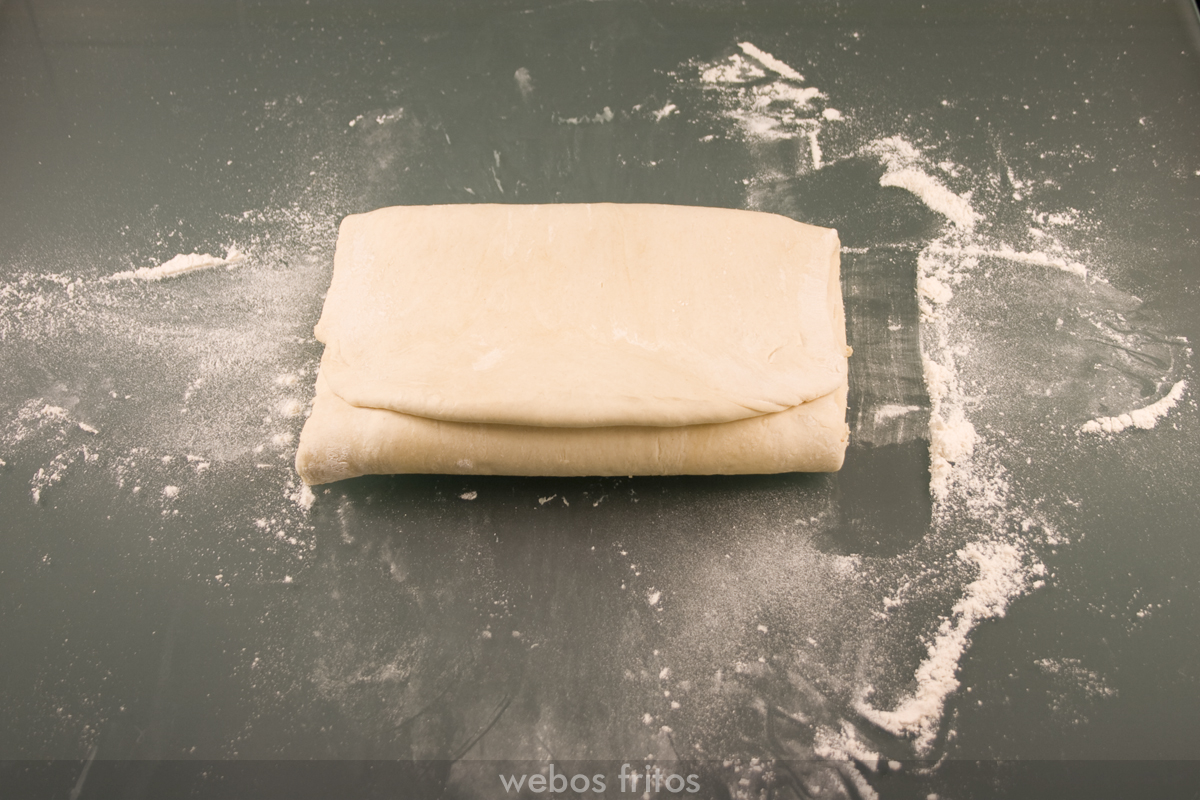 Repetir los pasos 20 a 24 una tercera vez. Dejar enfriar y reposar nuevamente durante 20 minutos en el frigorífico. Ya están realizadas las seis vueltas necesarias.