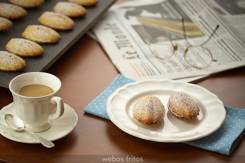Touché me has dejado, con la receta, las madeleines y la foto con las gafitas y “Le Monde” de fondo y esperando impaciente que nos trasmitas parte de los conocimientos adquiridos. Gracias de antemano.