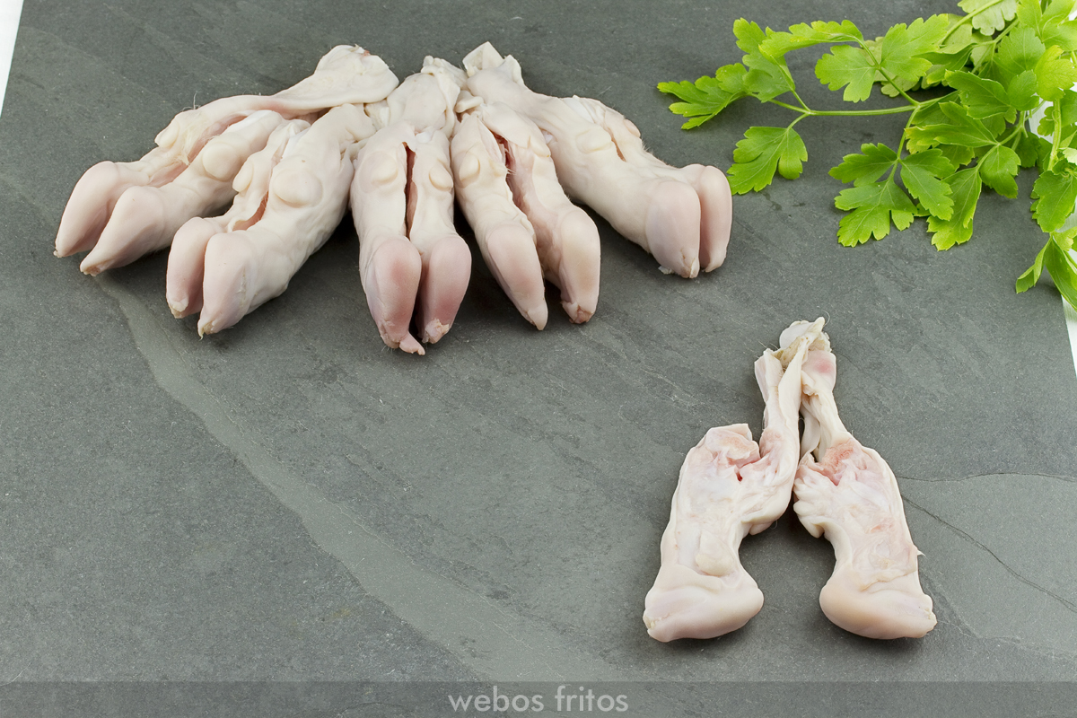 • Pasarlas por harina y huevo, tanto si dejamos el hueso como si no, y freírlas en abundante aceite de oliva virgen. Meter las manitas en la salsa y dejarlas cocer en ella unos 5 minutos.