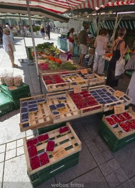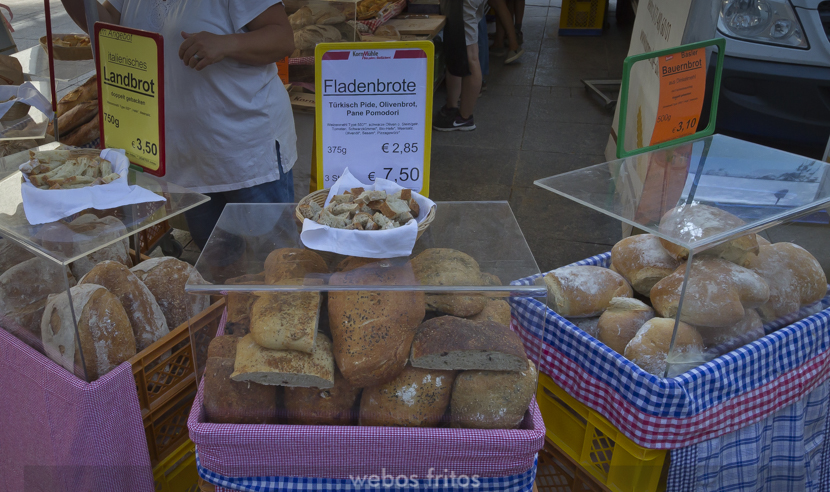El mercado de Ulm no sólo es espectacular en época de Navidad, del que encontraréis muchas imágenes en Google, sino que en pleno verano, como podéis ver en las fotos, es un espectáculo de frutas y verduras. Pasear por él fue una delicia. Me interesó especialmente un puesto de patatas donde pude contar hasta 15 variedades distintas, ¡nunca había visto tantas variedades juntas! Los puestos de encurtidos, muy recomendables, un puesto de salchichas a la brasa, extraordinario, y, como no, ¡había pan!