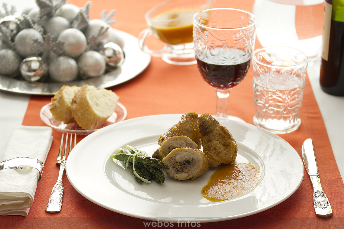 No me siento capaz, francamente, de la cirujía, pero tal vez unos contramuslos se presten a rellenar, enrollar (bridar es más sencillo que coser) y… mmmmmm… me quedo la receta!
