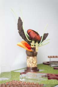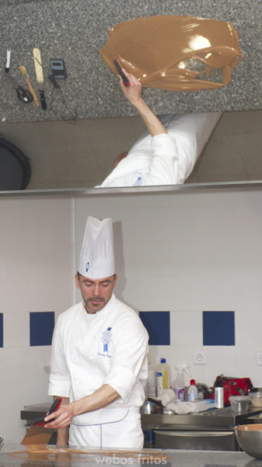 El tema del chocolate me ha interesado siempre, pero de él he aprendido muchas cosas técnicas: por qué y para qué atemperamos el chocolate, los tres métodos que hay, aprendí a hacer bombones rellenos fabulosos, cómo preparar los moldes en los que van los bombones, qué material es el más adecuado, algún detalle de decoración sencillo pero muy bonito y pude ver alguno de sus trabajos en decoración de alto nivel, algo ya inalcanzable para el común de los mortales que no nos hemos formado para hacer esas piezas.