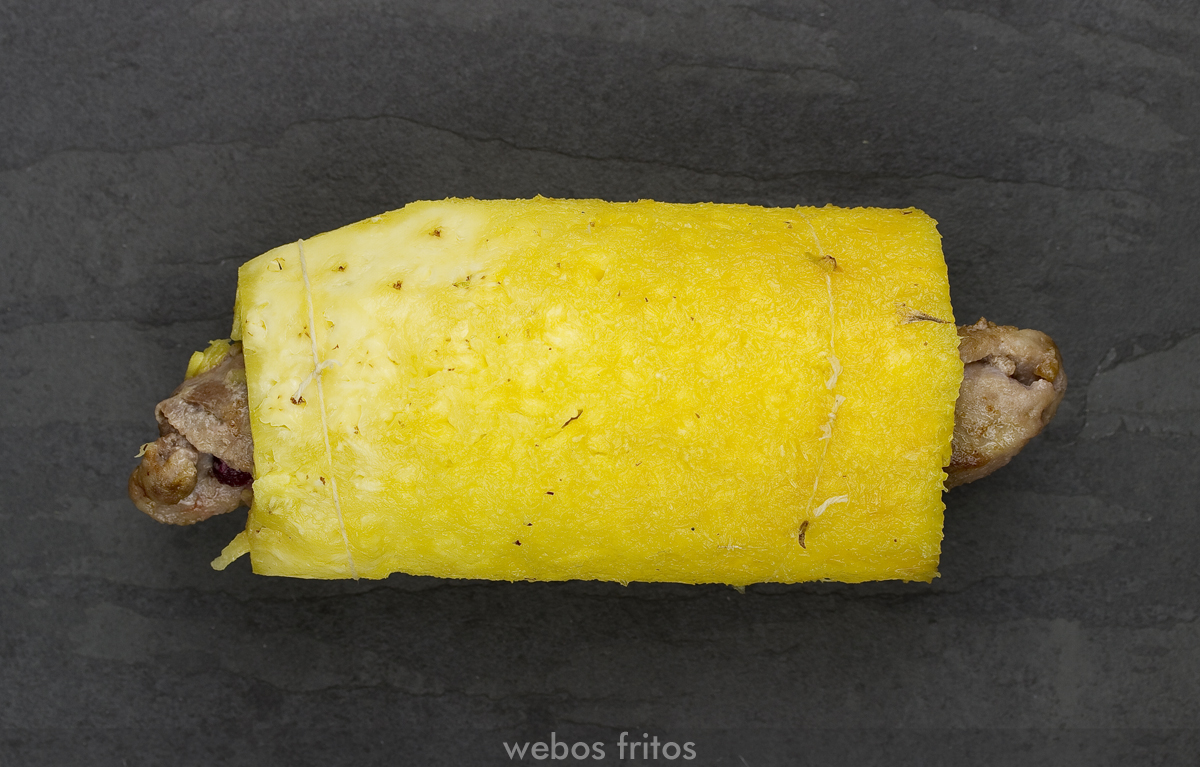 • Cuando la carne esté fría, cortar rodajas con un cuchillo afilado. Se corta muy fácil, pero hay que manipularlo con cuidado, para que la piña no se deshaga en exceso.
